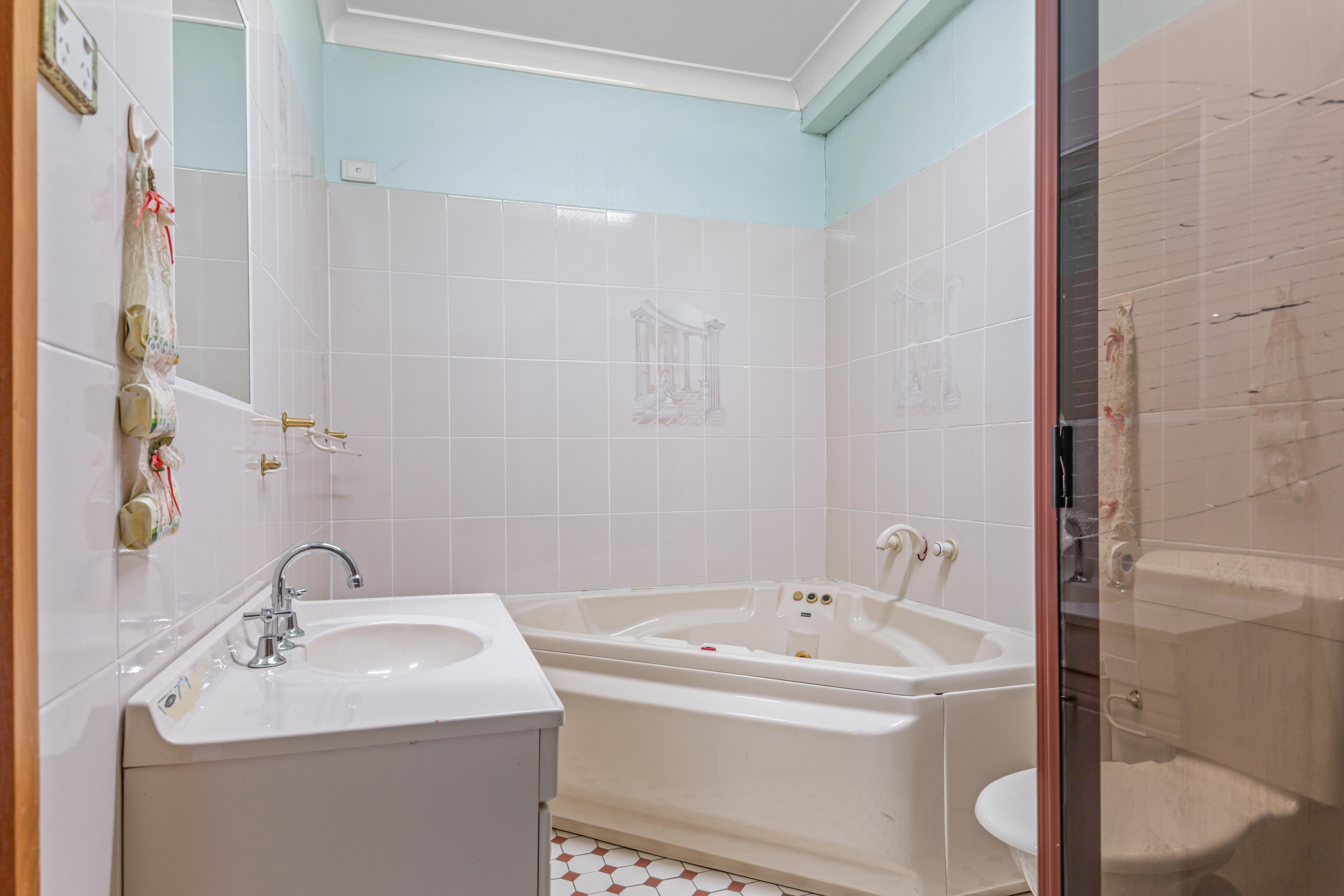 • Two-way bathroom between two bedrooms with spa bath, shower, vanity and toilet