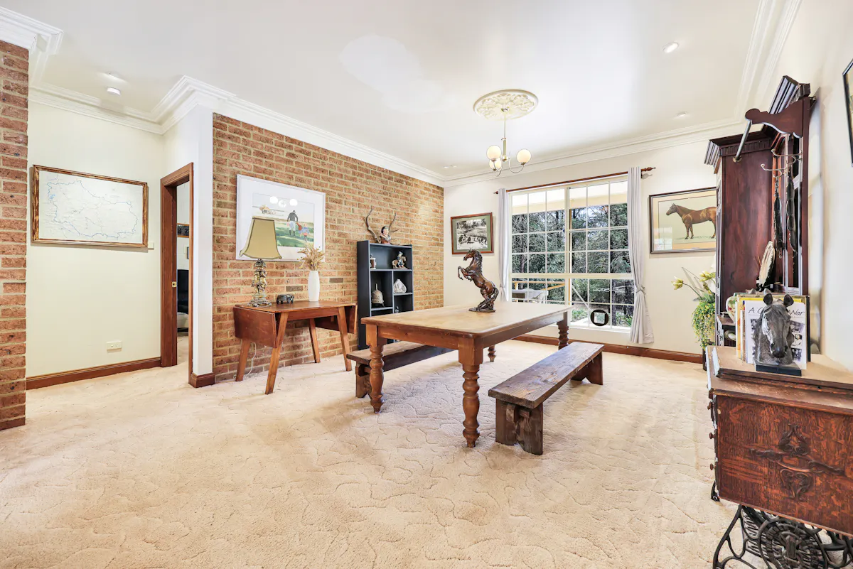 The spacious brick residence features four bedrooms plus a dedicated office, complemented by 9-foot ceilings throughout. Designed for family living, the open-plan kitchen, dining and living area forms the heart of the home, while a separate formal dining room adds versatility for entertaining. A wide hallway leads to the generously sized master bedroom, complete with walk-in robe and ensuite, while the remaining bedrooms all include built-in wardrobes and ample space.
