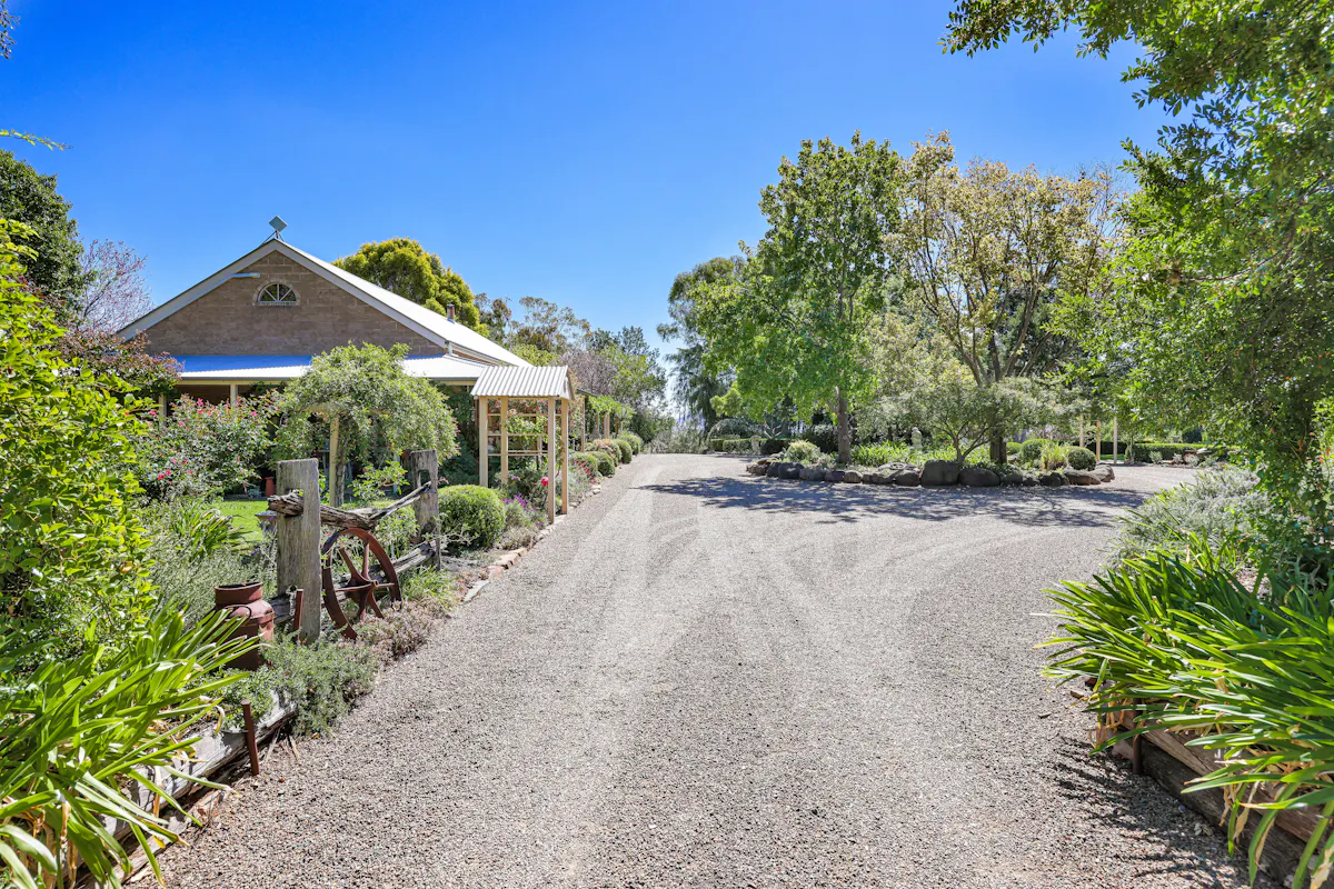 Set across 5.5* acres of established grounds, this Tuscan-inspired residence delivers a level of maturity and lifestyle rarely offered to the market. Every element, from the tree-lined approach to the layered gardens, has been thoughtfully designed and shaped over the yearsThe home itself balances warmth and scale. Raked timber ceilings create an impressive open living area, anchored by a gourmet country kitchen and wood fire, forming a natural gathering point through every season.