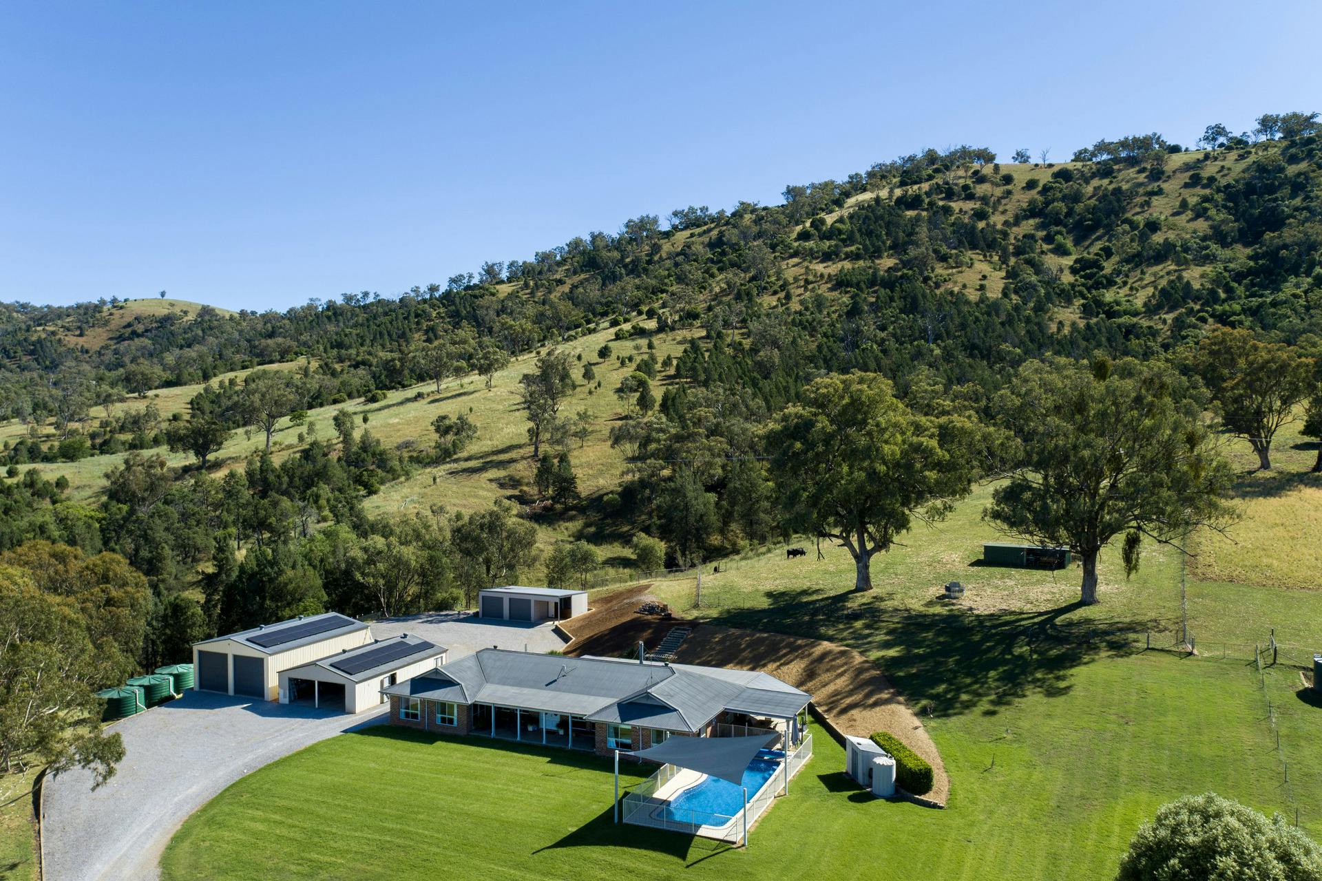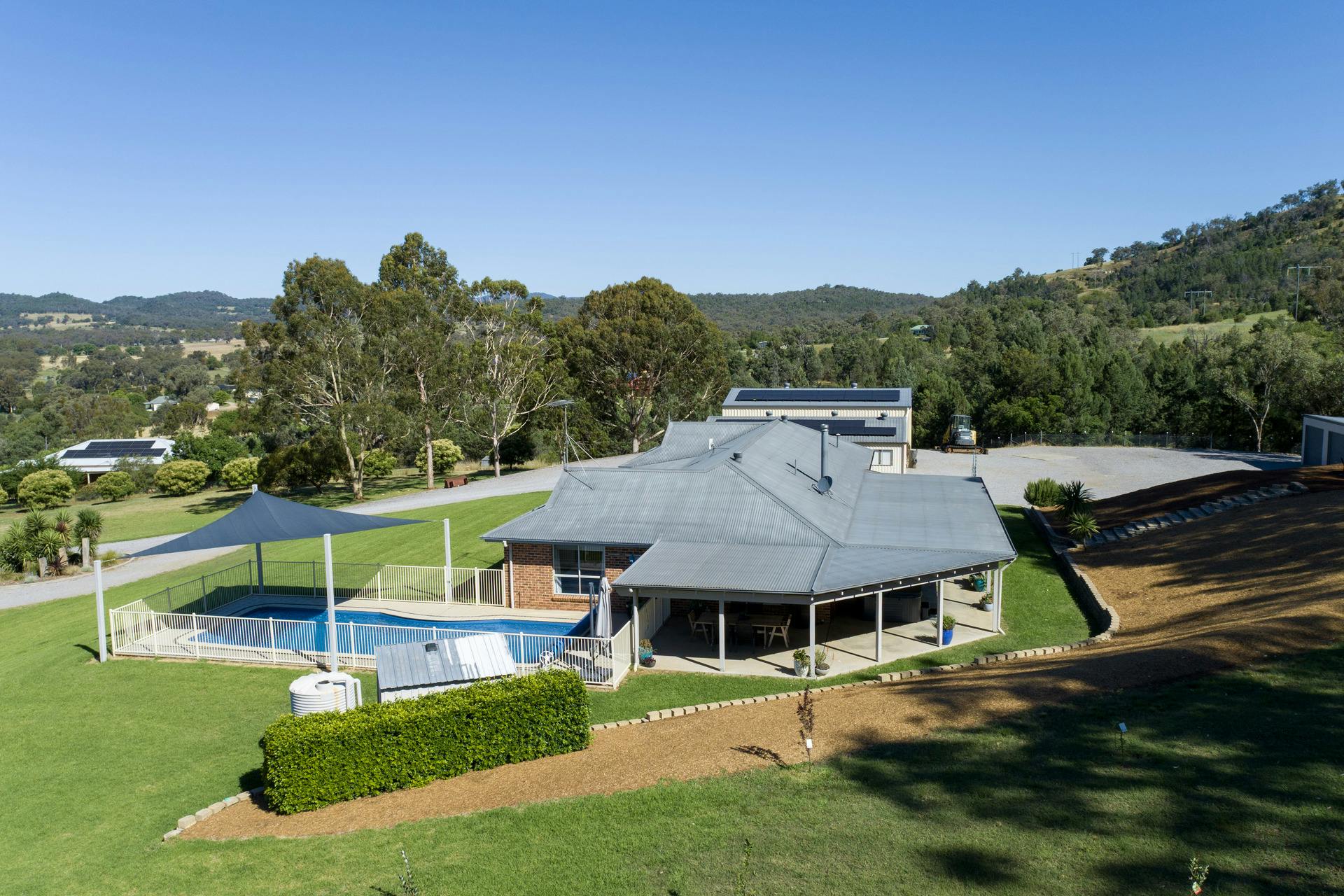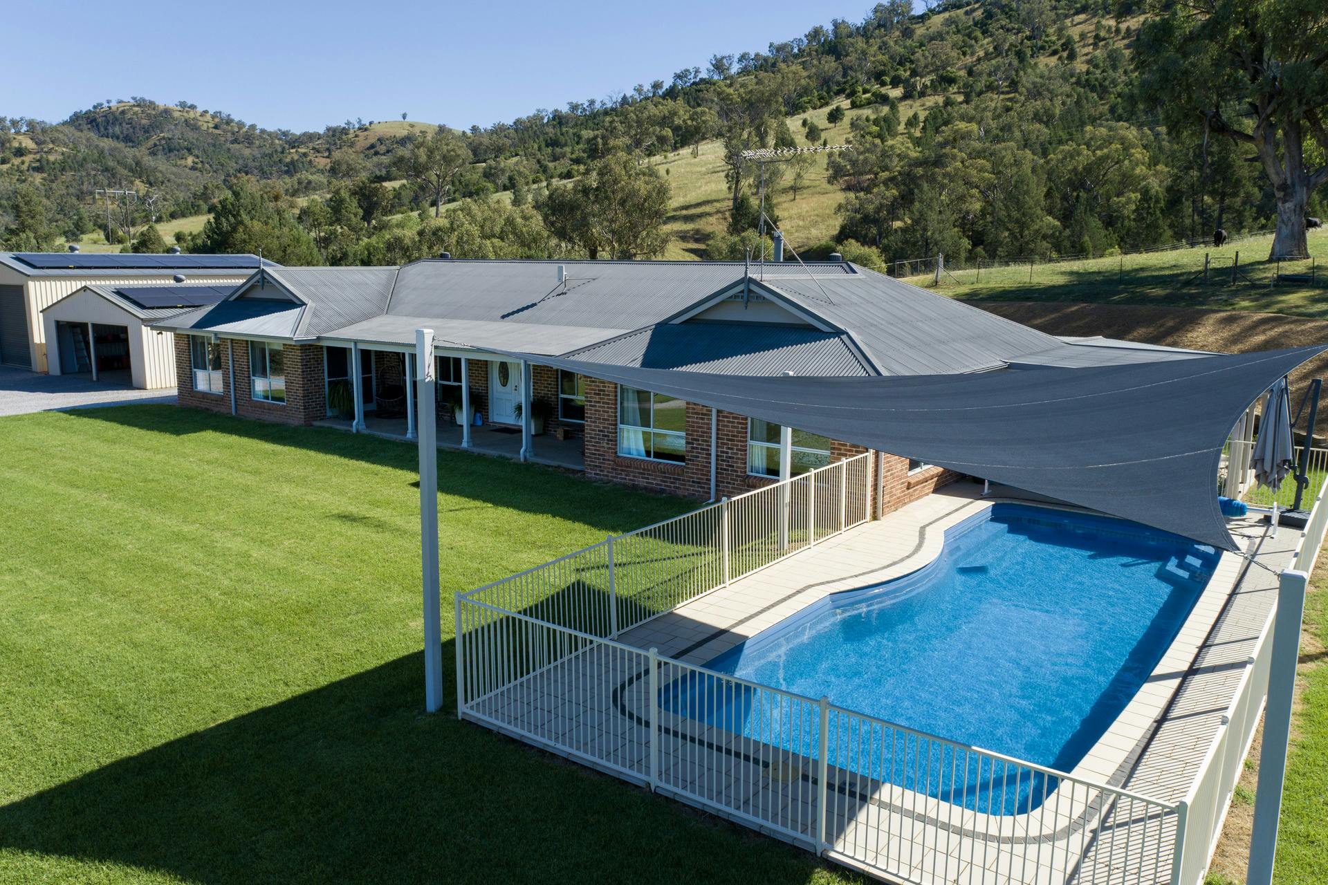 Entertain or unwind in the expansive covered outdoor area, leading to an 11-metre inground fibreglass pool with shade sail - all set against the magnificent valley backdrop.