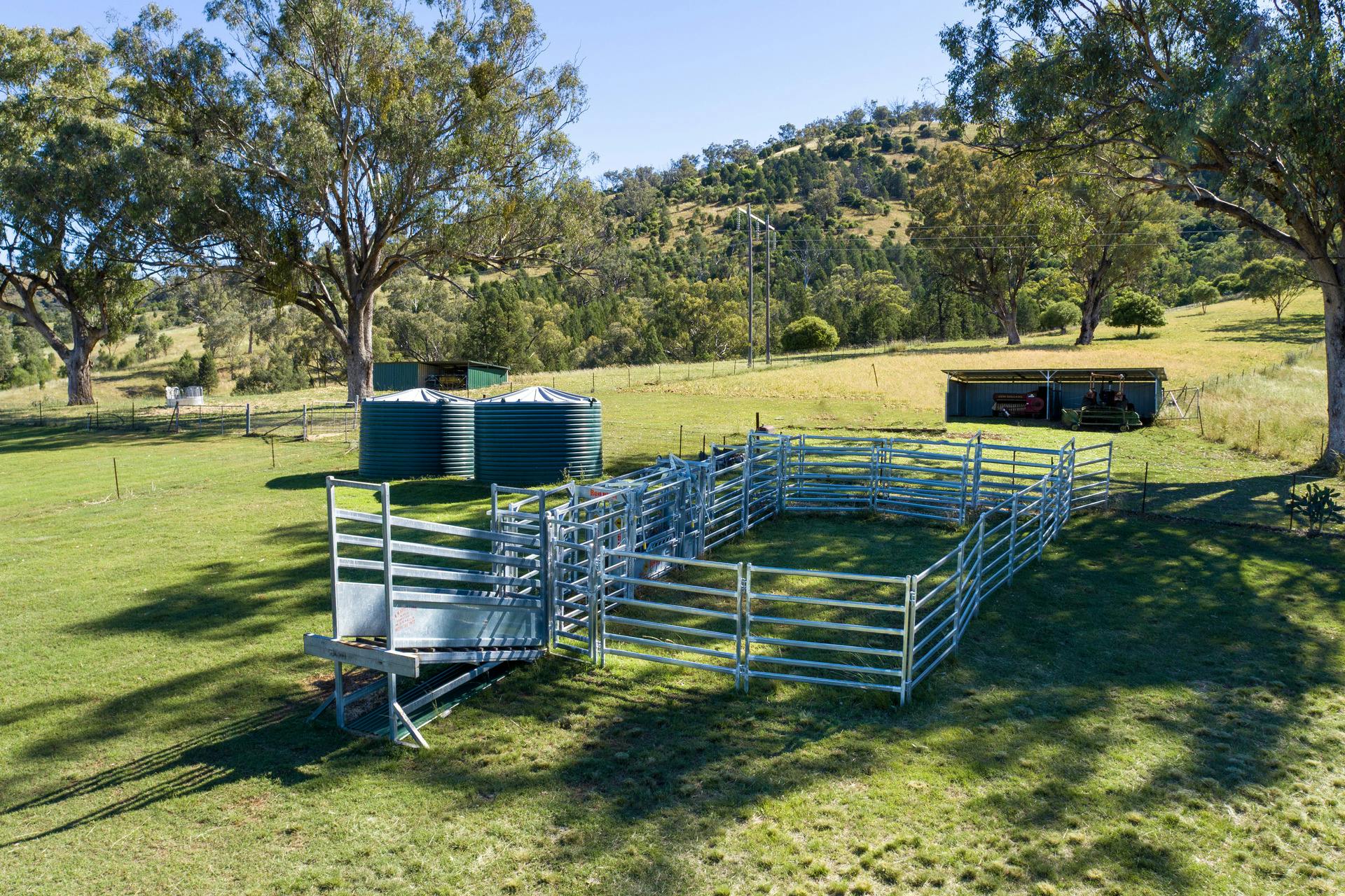 • Steel cattle yards, fenced paddocks with troughs, and two shelter sheds