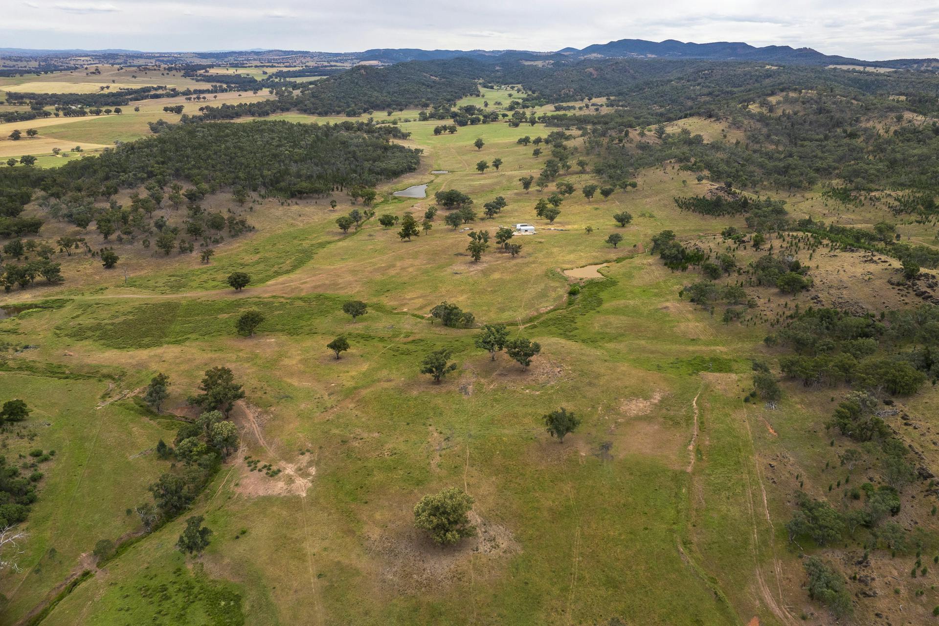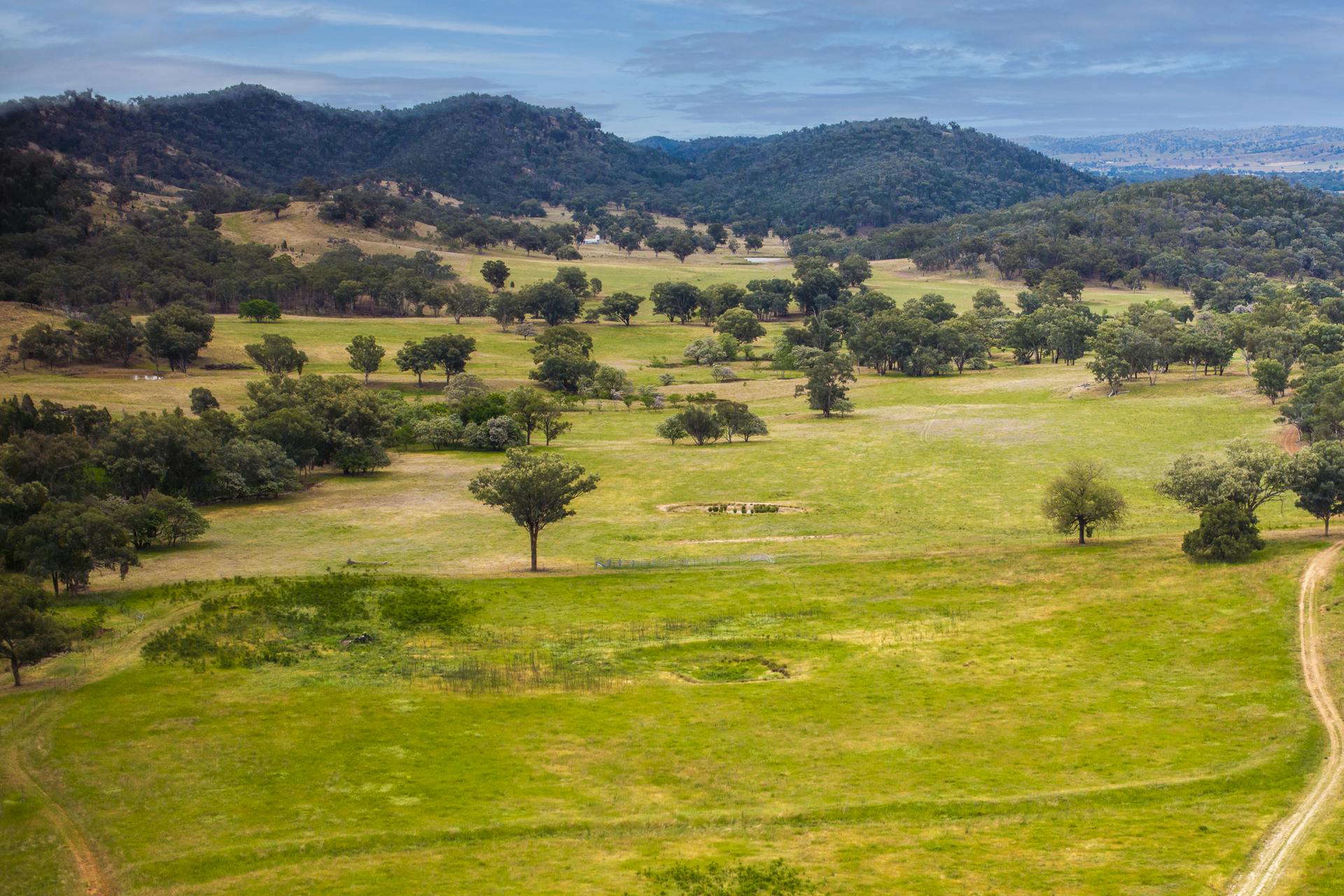 'The Spring' is a located some 14.5km from Wellington. It is accessed off the Mountain Valley Road or Catombal Creek Lane via Mitchell Highway. Tucked away it is very private with rich undulating creek flats rising to timbered hills.